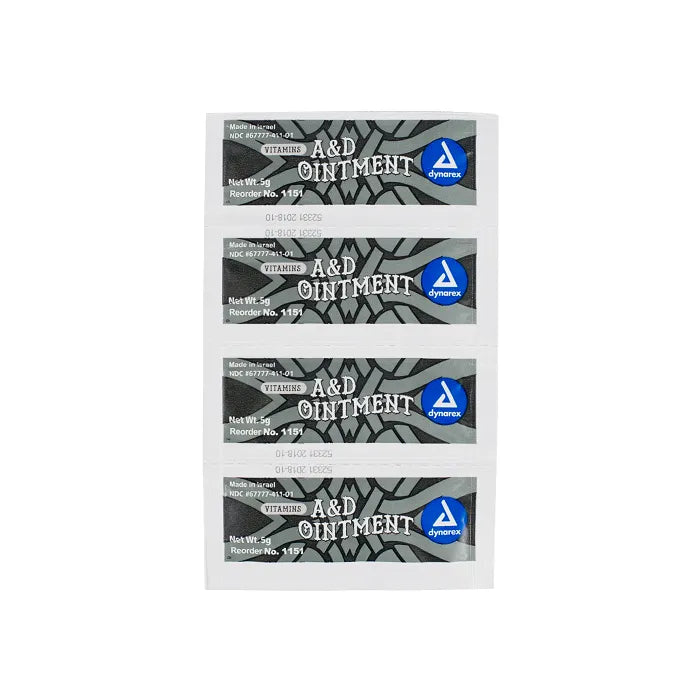 Dynarex Vitamins A & D Ointment is a skin protectant for minor cuts, scrapes, and burns. With the vitamin A and vitamin D base, this ointment is used as a diaper rash ointment, as well as an excellent tattoo aftercare.